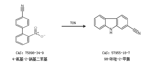 1.通过4-氰基-2-硝基二苯基合成9H-咔唑-2-甲腈,收率约70%;