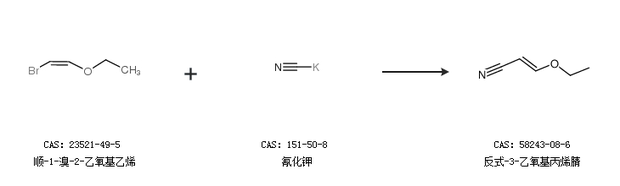 1.通过顺-1-溴-2-乙氧基乙烯和氰化钾合成反式-3-乙氧基丙烯腈