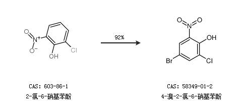 2.通过2-氯-6-硝基苯酚合成4-溴-2-氯-6-硝基苯酚,收率约92%;