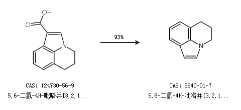 1.通过5,6-二氢-4H-吡咯并[3,2,1-ij]喹啉-1-羧酸合成5,6-二氢-4H-吡咯并[3,2,1-ij]喹啉,收率约93%;