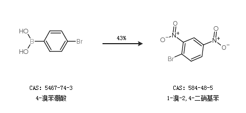 1.通过4-溴苯硼酸合成1-溴-2,4-二硝基苯,收率约43%;
