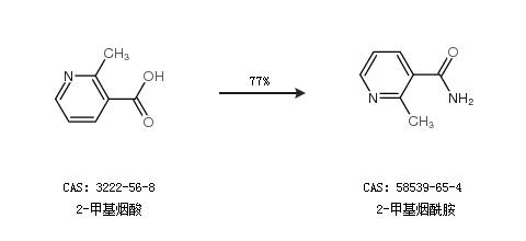 1.通过2-甲基烟酸合成2-甲基烟酰胺,收率约77%;