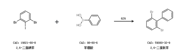 1.通过2,6-二溴碘苯和苯硼酸合成2,6-二溴联苯,收率约62%;