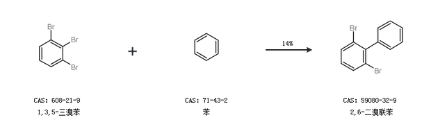 2.通过1,3,5-三溴苯和苯合成2,6-二溴联苯,收率约14%;