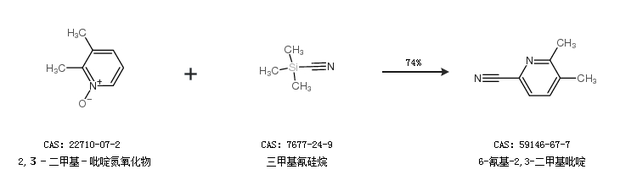 1.通过2,3-二甲基-吡啶氮氧化物和三甲基氰硅烷合成6-氰基-2,3-二甲基吡啶,收率约74%;