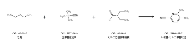 2.通过乙醚、三甲基氰硅烷和N,N-二乙基氯甲酰胺合成6-氰基-2,3-二甲基吡啶