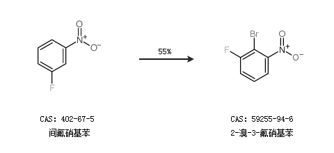 1.通过间氟硝基苯合成2-溴-3-氟硝基苯,收率约55%;