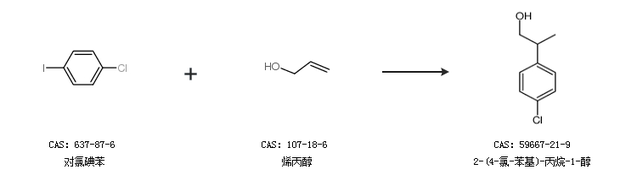 1.通过对氯碘苯和烯丙醇合成2-(4-氯-苯基)-丙烷-1-醇