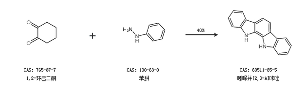 2.通过1,2-环己二酮和苯肼合成吲哚并[2,3-A]咔唑,收率约40%;