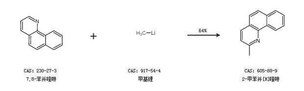 1.通过7,8-苯并喹啉和甲基锂合成2-甲苯并[H]喹啉,收率约64%;