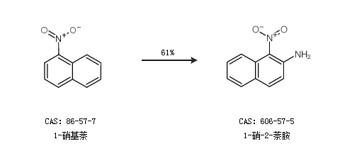 2.通过1-硝基萘合成1-硝-2-萘胺,收率约61%;