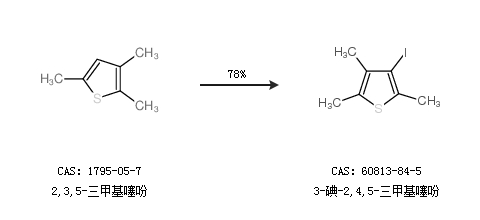 1.通过2,3,5-三甲基噻吩合成3-碘-2,4,5-三甲基噻吩,收率约78%;