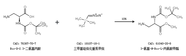 1.通过Boc-D-2.3-二氨基丙酸和三甲基硅烷化重氮甲烷合成3-氨基-N-Boc-L-丙氨酸甲酯,收率约10%;
