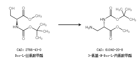 2.通过Boc-L-丝氨酸甲酯合成3-氨基-N-Boc-L-丙氨酸甲酯