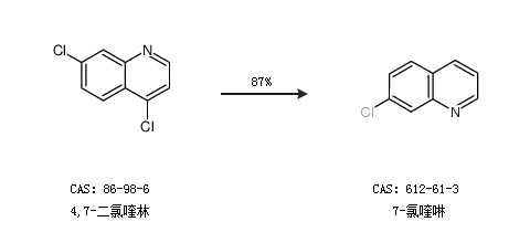 2.通过4,7-二氯喹林合成7-氯喹啉,收率约87%;