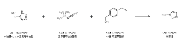 2.通过5-巯基-1,2,3-三氮唑单钠盐、三甲基甲硅烷基锡和4-溴 甲基苄基醇合成杀草强