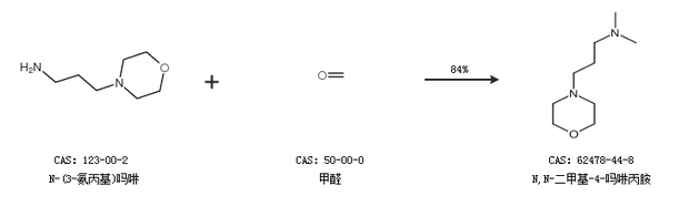 1.通过N-(3-氨丙基)吗啉和甲醛合成N,N-二甲基-4-吗啉丙胺,收率约84%;
