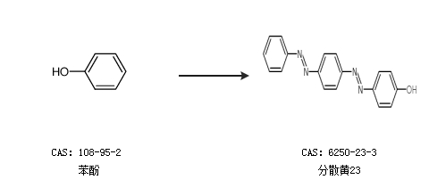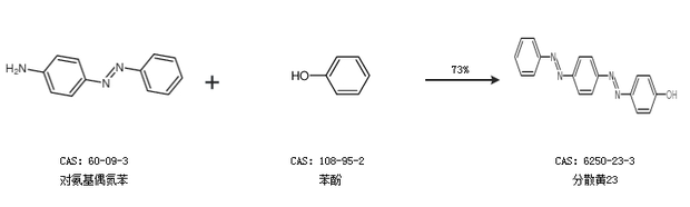 1.通过对氨基偶氮苯和苯酚合成分散黄23,收率约73%;