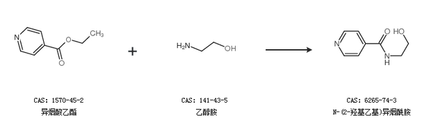 1.通过异烟酸甲酯和乙醇胺合成N-(2-羟基乙基)异烟酰胺,收率约85%;