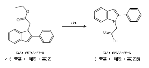 1.通过2-(2-苯基-1H-吲哚-1-基)乙酸乙酯合成(2-苯基-1H-吲哚-1-基)乙酸,收率约47%;