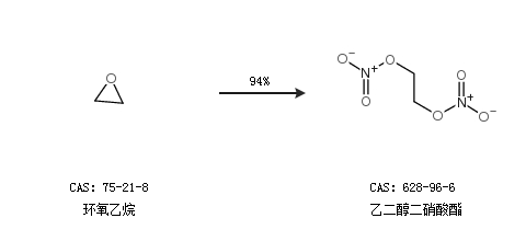 1.通过环氧乙烷合成乙二醇二硝酸酯,收率约94%;