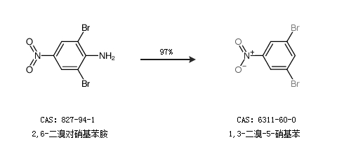 1.通过2,6-二溴对硝基苯胺合成1,3-二溴-5-硝基苯,收率约97%;