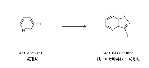 2.通过3-氟吡啶合成3-碘-1H-吡唑并[4,3-b]吡啶