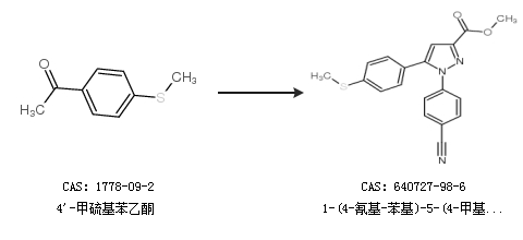 2.通过4''-甲硫基苯乙酮合成1-(4-氰基-苯基)-5-(4-甲基磺酰基-苯基)-1H-吡唑-3-羧酸甲酯
