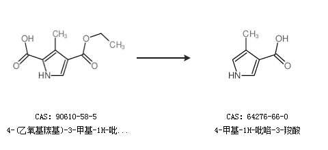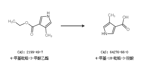 1.通过4-甲基吡咯-3-甲酸乙酯合成4-甲基-1H-吡咯-3-羧酸