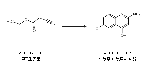 1.通过氰乙酸乙酯合成2-氨基-6-氯喹啉-4-醇