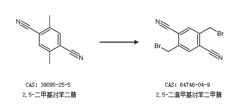1.通过2,5-二甲基对苯二腈合成2,5-二溴甲基对苯二甲腈