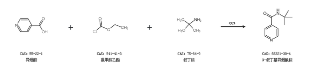 1.通过异烟酸、氯甲酸乙酯和叔丁胺合成N-叔丁基异烟酰胺,收率约68%;