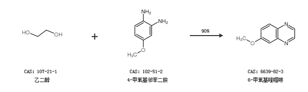 1.通过乙二醇和4-甲氧基邻苯二胺合成6-甲氧基喹喔啉,收率约90%;