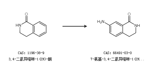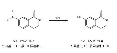 1.通过7-硝基-3,4-二氢-2H-异喹啉-1-酮合成7-氨基-3,4-二氢异喹啉-1(2H)-酮,收率约93%;
