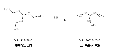 1.通过原甲酸三乙酯合成三(甲基硒)甲烷,收率约82%;