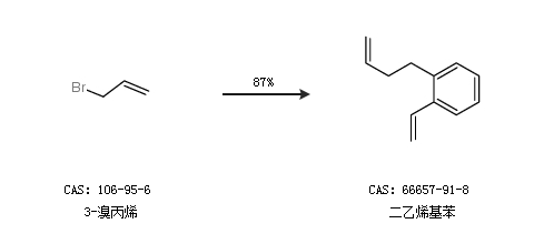 1.通过3-溴丙烯合成二乙烯基苯,收率约87%;