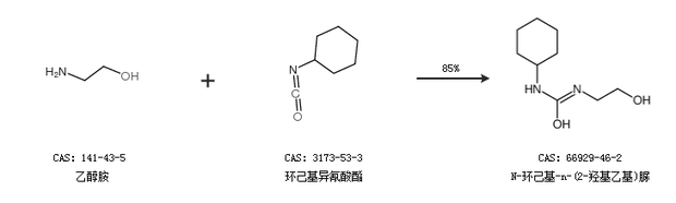 1.通过乙醇胺和环己基异氰酸酯合成N-环己基-n-(2-羟基乙基)脲,收率约85%;