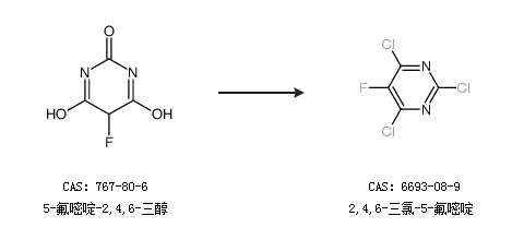 1.通过5-氟嘧啶-2,4,6-三醇合成2,4,6-三氯-5-氟嘧啶