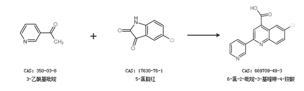 1.通过3-乙酰基吡啶和5-氯靛红合成6-氯-2-吡啶-3-基喹啉-4-羧酸
