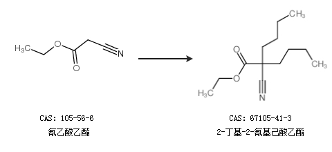 1.通过正溴丁烷和氰乙酸乙酯合成2-丁基-2-氰基己酸乙酯