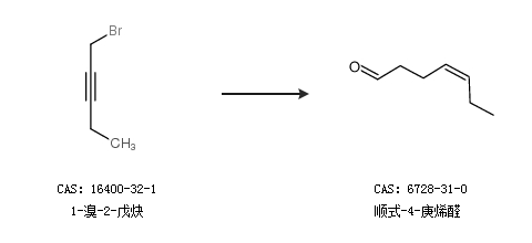 1.通过1-溴-2-戊炔合成顺式-4-庚烯醛