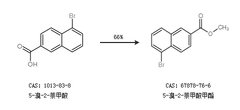 2.通过5-溴-2-萘甲酸合成5-溴-2-萘甲酸甲酯,收率约66%;