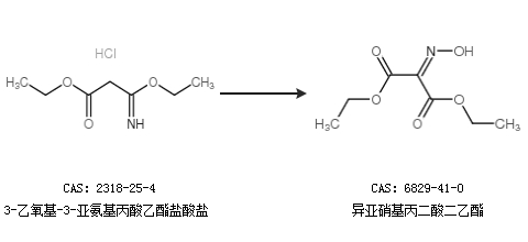 1.通过3-乙氧基-3-亚氨基丙酸乙酯盐酸盐合成异亚硝基丙二酸二乙酯