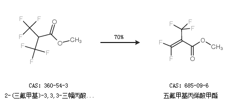 1.通过2-(三氟甲基)-3,3,3-三幅丙酸甲酯合成五氟甲基丙烯酸甲酯,收率约70%;