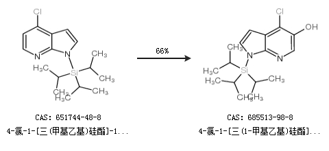 1.通过4-氯-1-[三(甲基乙基)硅酯]-1H-吡咯并[2,3-B]吡啶合成4-氯-1-[三(1-甲基乙基)硅酯]-1H-吡咯并[2,3-B]吡啶-5-醇,收率约66%;