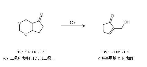 2.通过6,7-二氢环戊并[d][1,3]二噁英-5(4H)-酮合成2-羟基甲基-2-环戊酮,收率约90%;