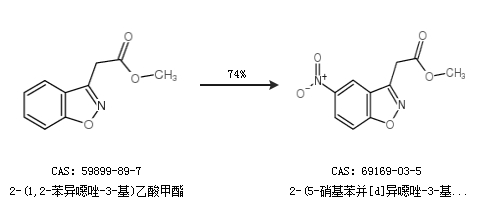 1.通过2-(1,2-苯异噁唑-3-基)乙酸甲酯合成2-(5-硝基苯并[d]异噁唑-3-基)乙酸甲酯,收率约74%;
