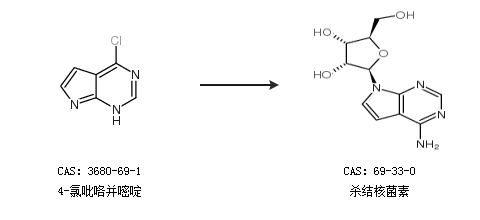 英文别名 7-Deazaadenosine;4-amino-7-(D-ribofuranosyl)-7H-pyrrolo{2,3-d}pyrimidine;Sparsomycine A;sparsomycina;TUBERCIDIN;Tubercidine;