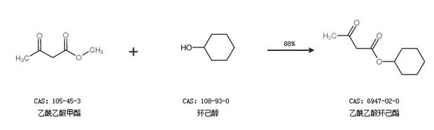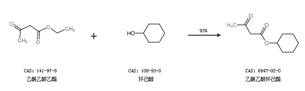 1.通过乙酰乙酸乙酯和环己醇合成乙酰乙酸环己酯,收率约93%;