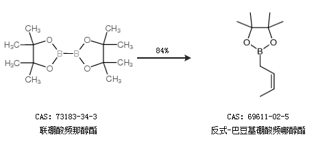 1.通过联硼酸频那醇酯合成反式-巴豆基硼酸频哪醇酯,收率约84%;